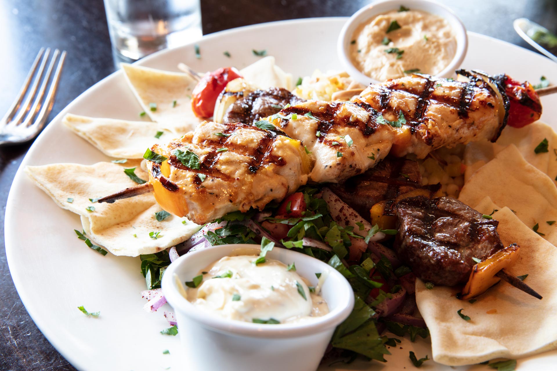 At Olives, we take great pride in bringing you a taste of the Mediterranean with a modern twist. Whether you're here to savor our delicious dishes, experience our exceptional service, or simply enjoy the cozy ambiance, we are here to cater to your every need.Step into Olives and let the inviting atmosphere embrace you with its warmth and relaxation. Our friendly team is dedicated to ensuring that your dining experience is nothing short of extraordinary. Embark on a journey of flavors and experiences that transcend the ordinary. Our passion for crafting exquisite dishes is evident in every bite. Whether you seek to tantalize your taste buds with authentic Mediterranean delights or explore new horizons with a modern twist, Olives is here to elevate your dining experience.